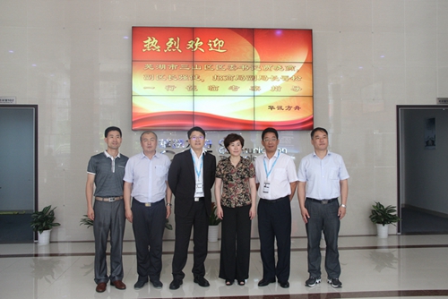 7月17日,蕪湖市三山區(qū)區(qū)委書記賈曉燕,副區(qū)長強(qiáng)健,招商局副局長晉松一行前來華訊參觀考察。總裁趙術(shù)開、副總裁唐永健、總裁辦主任范叢明等領(lǐng)導(dǎo)出面予以接待。 本次考察
